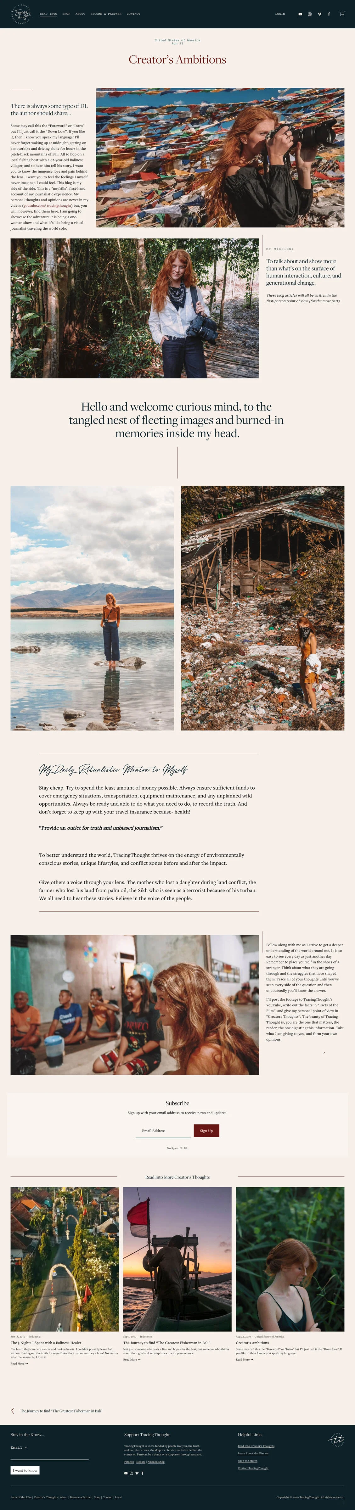 ….With this redesigned website and improved user experience, TracingThought’s viewers and supporters now have a digital home to go back to, as they continue to keep up with Ashlei’s journey of finding a deeper understanding. ..Con este sitio web rediseñado y una experiencia de usuario mejorada, los usuarios y seguidores de TracingThought ahora tienen un hogar digital al que regresar, ya que continúan manteniéndose al día con los viajes e historias de Ashlei por el mundo. ….
